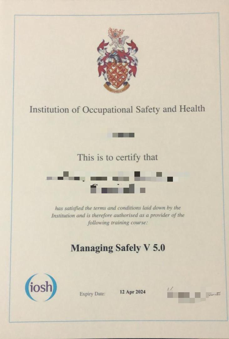 ممكن نموذج من الشهادة الدولية لدورة الأيوش IOSH